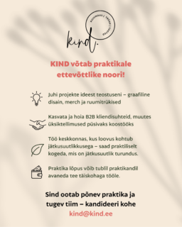 3. Kui soovid liituda meie meeskonnaga ja saada väärtuslikku kogemust, saada palun oma CV ja lühike motivatsioonikiri aadressile kind@kind.ee.
